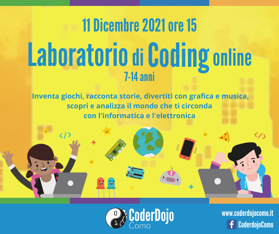 CoderDojo Como ti aspetta on line sabato 11 Dicembre 2021 dalle 15 alle 18 su Zoom!