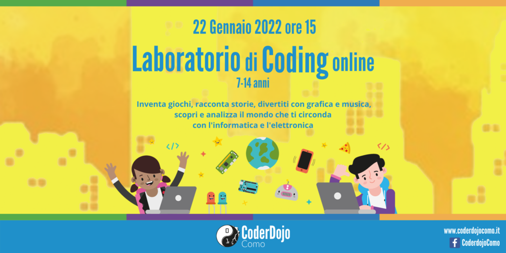 CoderDojo Como ti aspetta on line sabato 22 Gennaio 2022 dalle 15 alle 18 su Zoom!